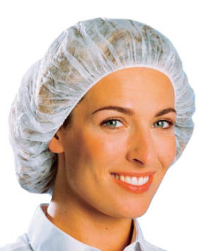 Soft lightweight round elasticated bonnet in polypropylene, non woven 18g fabric, single elastic. 10 PACKS OF 100 IN A CARTON. (Order in multiples of 10 packs)