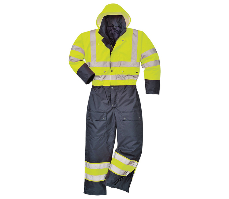 The PORTWEST S485 Contrast Coverall is has a quilted liner with 170g wadding insulation giving extra warmth, elasticated waist for a comfort fit, inner ribbed cuffs, zipped ankles. Also features 4 cargo pockets and a radio loop. ENISO 20471 Class, EN343 Class 3/1, EN342 Class 3.