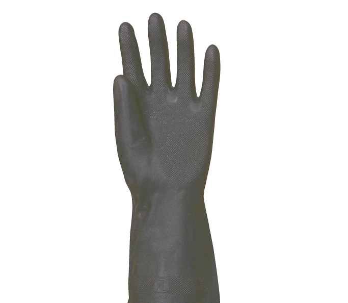 Neoprene rubber glove with a flock lining. Grip pattern on palm, protects against chemicals. Similar to household glove. EN420 EN388 (4101) EN374-2 EN374-3. Pack = 12 pairs, Carton = 144 pairs.