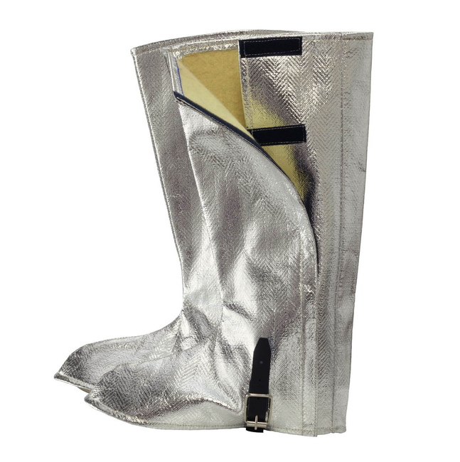 Total top-of-the-foot coverage. Lateral fastening with wide Velcro® strips. Leather support strap under the sole with adjustable buckle. Length: 45cm. Packed: by pair. One size.