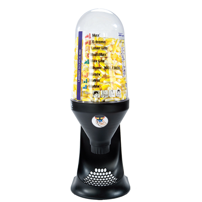 LS400 Wall mounted or free standing dispenser suitable for 400 pairs of ear plugs, transparent eye catching design to encourage wide use. Refills Code EP303LDR purchased separately.