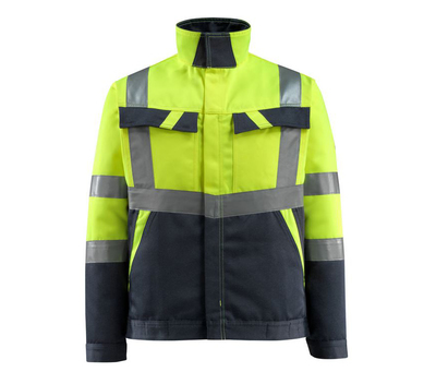 No seams on the top of the shoulders: prevents water from penetrating. Inside straps for attaching MASCOT® Bendigo holster pockets. The dark contrast is placed where the clothing is most exposed to dirt. Additional safety with vertical reflective strips that connect with the horizontal reflectors. Slits in the sleeves allow you to easily roll them up. 80% polyester/20% cotton, 285 g/m² . Certified to EN ISO 20471 - class 2