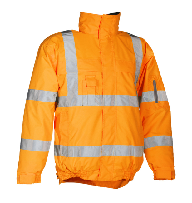 SIOEN 404A Hobson Hi-Visibility Bomber Jacket is 100% Waterproof, Windproof, Highly Breathable. With Good Cold Protection, Taped Seams and Extended Backs. ENISO 20471 Class 3, EN343 Class 3/3.