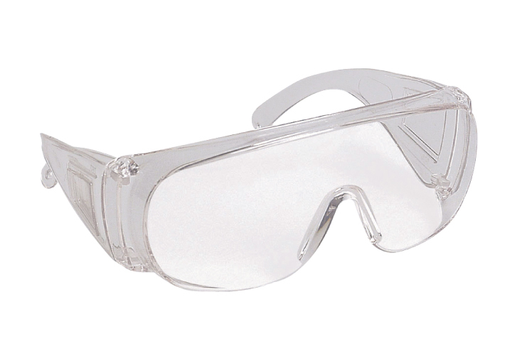 Single view lens with wide wrap around lens, integral mould nose piece. Low cost so ideal for visitors also fits over most prescription eyewear. EN166 1F.